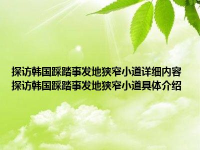 1、想必大家现在对于探访韩国踩踏事发地“狭窄”小道方面的信息都是比较想了解的吧,那么针对于探访韩国踩踏事发地“狭窄”小道方面的信息,小西自然是收集了一些相关方面的信息,那么如果您感兴趣的话,可以看下下面小西为大家收集到与探访韩国踩踏事发地“狭窄”小道相关的信息吧。