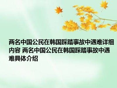 - 两名中国公民在韩国踩踏事故中遇难详细内容 两名中国公民在韩国踩踏事故中遇难具体介绍