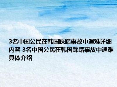 大家好,小太来为大家解答以上问题。3名中国公民在韩国踩踏事故中遇难很多人还不知道,现在让我们一起来看看吧!