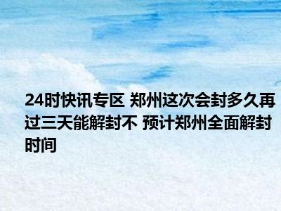 导读 今天关于24时快讯专区 郑州这次会封多久再过三天能解封不 预计郑州全面解封时间的热度相当高,大家目前都对于24时快讯专区 郑州这次会封...