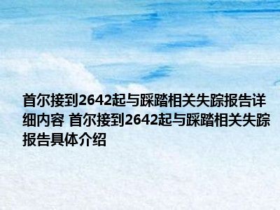 1、想必大家现在对于首尔接到2642起与踩踏相关失踪报告方面的信息都是比较想了解的吧,那么针对于首尔接到2642起与踩踏相关失踪报告方面的信息,小西自然是收集了一些相关方面的信息,那么如果您感兴趣的话,可以看下下面小西为大家收集到与首尔接到2642起与踩踏相关失踪报告相关的信息吧。
