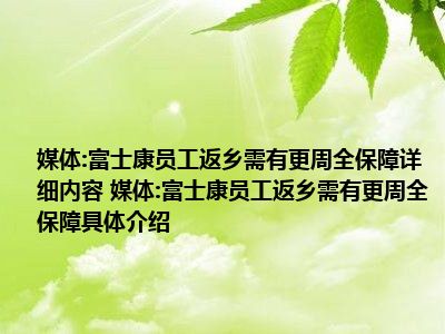 大家好,小太来为大家解答以上问题。媒体:富士康员工返乡需有更周全保障很多人还不知道,现在让我们一起来看看吧!