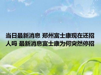 郑州富士康现在还招人吗 最新消息富士康为何突然停招现在是大家比较关注的,因为目前郑州富士康现在还招人吗 最新消息富士康为何突然停招的热度是相对比较高的,那么既然大家对此都比较感兴趣,小S也是特地到网上去查找了一些相关的信息,下面就由小S来把这些信息来分享给大家一起查阅吧。