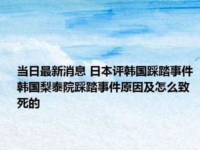 - 当日最新消息 日本评韩国踩踏事件 韩国梨泰院踩踏事件原因及怎么致死的