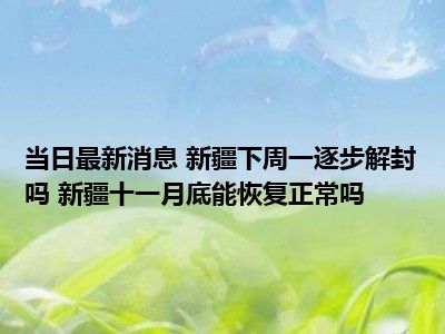 新疆下周一逐步解封吗 新疆十一月底能恢复正常吗现在是大家比较关注的,因为目前新疆下周一逐步解封吗 新疆十一月底能恢复正常吗的热度是相对比较高的,那么既然大家对此都比较感兴趣,小S也是特地到网上去查找了一些相关的信息,下面就由小S来把这些信息来分享给大家一起查阅吧。