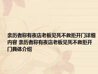 1、想必大家现在对于亲历者称有夜店老板见死不救拒开门方面的信息都是比较想了解的吧,那么针对于亲历者称有夜店老板见死不救拒开门方面的信息,小西自然是收集了一些相关方面的信息,那么如果您感兴趣的话,可以看下下面小西为大家收集到与亲历者称有夜店老板见死不救拒开门相关的信息吧。