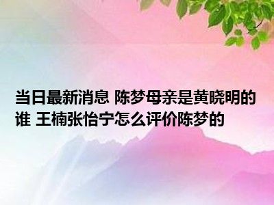 陈梦母亲是黄晓明的谁 王楠张怡宁怎么评价陈梦的现在是大家比较关注的,因为目前陈梦母亲是黄晓明的谁 王楠张怡宁怎么评价陈梦的的热度是相对比较高的,那么既然大家对此都比较感兴趣,小S也是特地到网上去查找了一些相关的信息,下面就由小S来把这些信息来分享给大家一起查阅吧。