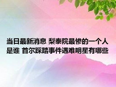 导读 梨泰院最惨的一个人是谁 首尔踩踏事件遇难明星有哪些现在是大家比较关注的,因为目前梨泰院最惨的一个人是谁 首尔踩踏事件遇难明星有哪...