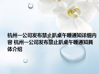 1、想必大家现在对于杭州一公司发布禁止趴桌午睡通知方面的信息都是比较想了解的吧,那么针对于杭州一公司发布禁止趴桌午睡通知方面的信息,小西自然是收集了一些相关方面的信息,那么如果您感兴趣的话,可以看下下面小西为大家收集到与杭州一公司发布禁止趴桌午睡通知相关的信息吧。