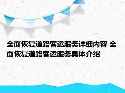 - 全面恢复道路客运服务详细内容 全面恢复道路客运服务具体介绍
