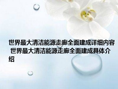 - 世界最大清洁能源走廊全面建成详细内容 世界最大清洁能源走廊全面建成具体介绍