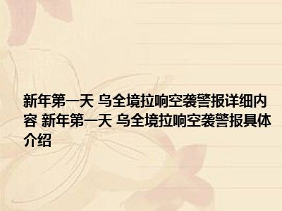 1、 想必大家现在对于新年第一天 乌全境拉响空袭警报方面的信息都是比较想了解的吧,那么针对于新年第一天 乌全境拉响空袭警报方面的信息,小西自然是收集了一些相关方面的信息,那么如果您感兴趣的话,可以看下下面小西为大家收集到与新年第一天 乌全境拉响空袭警报相关的信息吧。