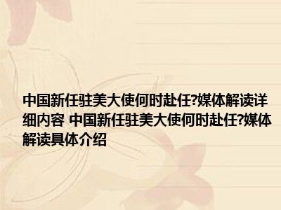 - 中国新任驻美大使何时赴任?媒体解读详细内容 中国新任驻美大使何时赴任?媒体解读具体介绍