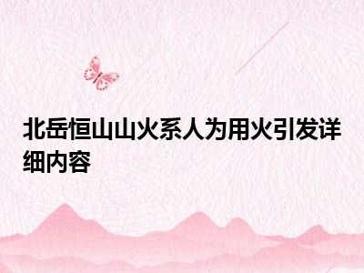 1、 想必大家现在对于北岳恒山山火系人为用火引发方面的信息都是比较想了解的吧,那么针对于北岳恒山山火系人为用火引发方面的信息,小西自然是收集了一些相关方面的信息,那么如果您感兴趣的话,可以看下下面小西为大家收集到与北岳恒山山火系人为用火引发相关的信息吧。