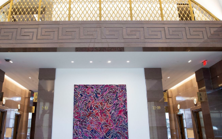 建筑大厅里的新古典主义艺术品 - 从1980年代遗留下来的 - 被布鲁克林雕塑家Brie Ruais,纽约画家Landon Metz,Fort Worth画家Matt Kleberg和利比亚Yurok艺术家Saif Azzuz等着名艺术家的更现代的作品所取代。