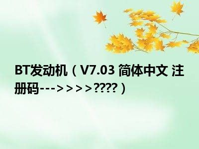 想必现在有很多小伙伴对于BT发动机 V7.03 简体中文 注册码--->>>>????方面的知识都比较想要了解,那么今天小好小编就为大家收集了一些关于BT发动机 V7.03 简体中文 注册码--->>>>????方面的知识分享给大家,希望大家会喜欢哦。