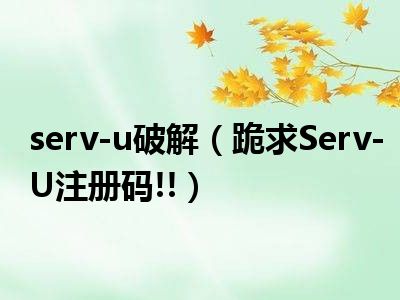 想必现在有很多小伙伴对于跪求Serv-U注册码!!方面的知识都比较想要了解,那么今天小好小编就为大家收集了一些关于跪求Serv-U注册码!!方面的知识分享给大家,希望大家会喜欢哦。