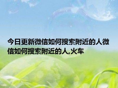 目前上述的内容应该能够为大家解答出大家对于微信如何搜索附近的人,微信如何搜索附近的人,火车的疑惑了,所以如果大家还想要了解更多的知识内容,也可以关注本站其他文章进行了解哦。