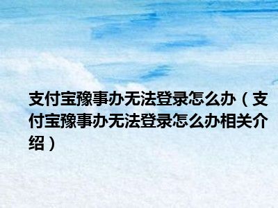 导读 对于支付宝豫事办无法登录怎么办这个问题感兴趣的朋友应该很多,这个也是目前大家比较关注的问题,那么下面小好小编就收集了一些支付宝豫事