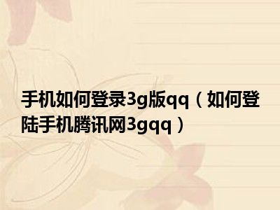 想必现在有很多小伙伴对于如何登陆手机腾讯网3gqq方面的知识都比较想要了解,那么今天小好小编就为大家收集了一些关于如何登陆手机腾讯网3