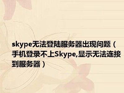 想必现在有很多小伙伴对于手机登录不上Skype,显示无法连接到服务器方面的知识都比较想要了解,那么今天小好小编就为大家收集了一些关于手机登录不上Skype,显示无法连接到服务器方面的知识分享给大家,希望大家会喜欢哦。