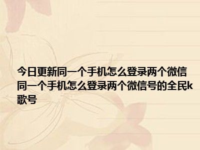目前上述的内容应该能够为大家解答出大家对于同一个手机怎么登录两个微信 同一个手机怎么登录两个微信号的全民k歌号的疑惑了,所以如果大家还想要了解更多的知识内容,也可以关注本站其他文章进行了解哦。