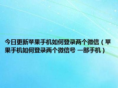目前上述的内容应该能够为大家解答出大家对于苹果手机如何登录两个微信(苹果手机如何登录两个微信号 一部手机)的疑惑了,所以如果大家还想要了解更多的知识内容,也可以关注本站其他文章进行了解哦。