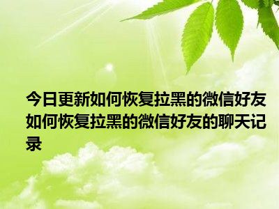 目前上述的内容应该能够为大家解答出大家对于如何恢复拉黑的微信好友 如何恢复拉黑的微信好友的聊天记录的疑惑了,所以如果大家还想要了解更多的知识内容,也可以关注本站其他文章进行了解哦。