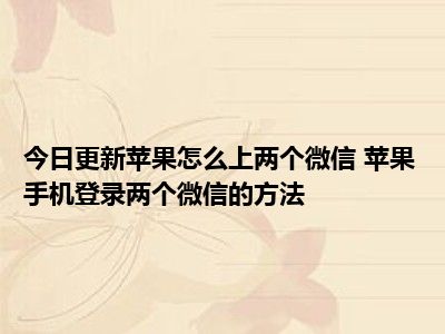 目前上述的内容应该能够为大家解答出大家对于苹果怎么上两个微信 苹果手机登录两个微信的方法的疑惑了,所以如果大家还想要了解更多的知识内容,也可以关注本站其他文章进行了解哦。