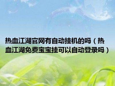 想必现在有很多小伙伴对于热血江湖免费宝宝挂可以自动登录吗方面的知识都比较想要了解,那么今天小好小编就为大家收集了一些关于热血江湖