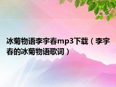 想必现在有很多小伙伴对于李宇春的冰菊物语歌词方面的知识都比较想要了解,那么今天小好小编就为大家收集了一些关于李宇春的冰菊物语歌词方面的知识分享给大家,希望大家会喜欢哦。