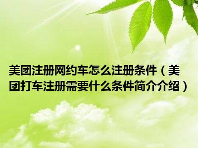 导读 对于美团打车注册需要什么条件这个问题感兴趣的朋友应该很多,这个也是目前大家比较关注的问题,那么下面小好小编就收集了一些美团打车注册