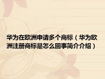 对于华为欧洲注册商标是怎么回事这个问题感兴趣的朋友应该很多,这个也是目前大家比较关注的问题,那么下面小好小编就收集了一些华为欧洲注册商标是怎么回事相关的知识回答,来分享给大家希望能够帮助到你哦。