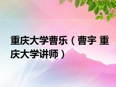 当前大家对于曹宇 重庆大学讲师都是颇为感兴趣的,大家都想要了解一下曹宇 重庆大学讲师,那么小美也是在网络上收集了一些关于曹宇 重庆大学讲师的一些信息来分享给大家,希望能够帮到大家哦。