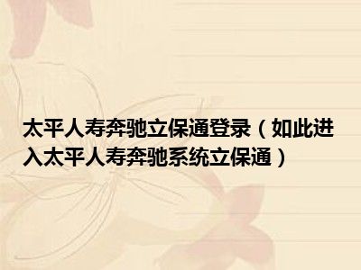 想必现在有很多小伙伴对于如此进入太平人寿奔驰系统立保通方面的知识都比较想要了解,那么今天小好小编就为大家收集了一些关于如此进入太