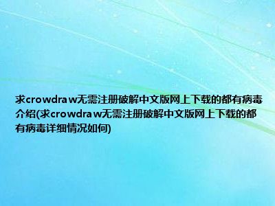 想必现在有很多小伙伴对于求crowdraw无需注册破解中文版,网上下载的都有病毒方面的知识都比较想要了解,那么今天小好小编就为大家收集了一些关于求crowdraw无需注册破解中文版,网上下载的都有病毒方面的知识分享给大家,希望大家会喜欢哦。