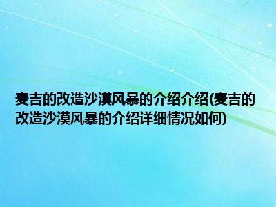 想必现在有很多小伙伴对于麦吉的改造沙漠风暴的介绍方面的知识都比较想要了解,那么今天小好小编就为大家收集了一些关于麦吉的改造沙漠风