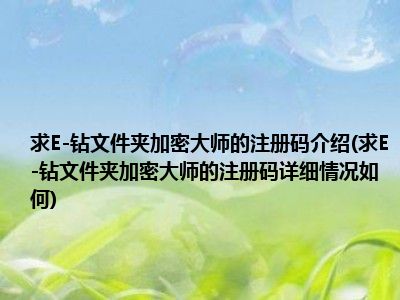 想必现在有很多小伙伴对于【求】E-钻文件夹加密大师的注册码方面的知识都比较想要了解,那么今天小好小编就为大家收集了一些关于【求】E-钻文件夹加密大师的注册码方面的知识分享给大家,希望大家会喜欢哦。