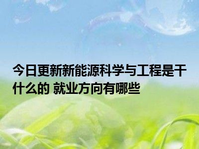在高考填报志愿选择专业时,很多考生对新能源科学与工程专业是干什么的问题很感兴趣。下面是由本站编辑为大家整理的“新能源科学与工程专业是干什么的 就业方向有哪些”。