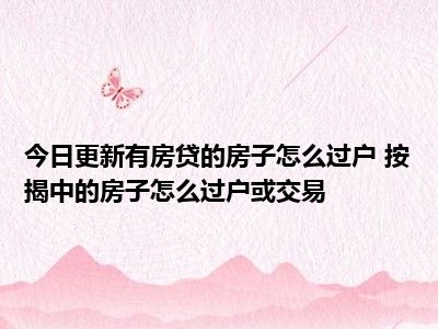 导读 目前大家应该是对有房贷的房子怎么过户 按揭中的房子怎么过户或交易比较感兴趣的,所以今天好房网小编CC就来为大家整理了一些关于有房贷的