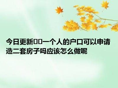 导读 目前大家应该是对一个人的户口可以申请造二套房子吗应该怎么做呢比较感兴趣的,所以今天好房网小编CC就来为大家整理了一些关于一个