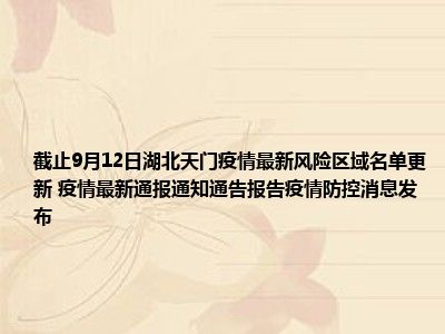 导读截止9月12日湖北天门疫情最新风险区域名单更新及疫情最新通报通知通告报告疫情防控消息发布如下:1、按照国家有关规定,高中风险地区及所...