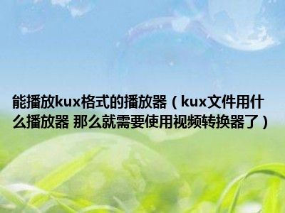 今天小编来给大家分享一些关于kux文件用什么播放器 那么就需要使用视频转换器了方面的知识吧,希望大家会喜欢哦