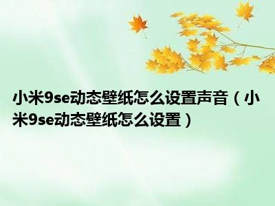 1、 小米9se动态壁纸怎么设置