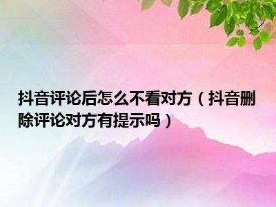 导读 1、抖音删除评论对方有提示吗?2、Tik Tok不会被提示删除评论。Tik Tok创建者删除评论者的评论,评论者不会得到提示。审核人删除给创