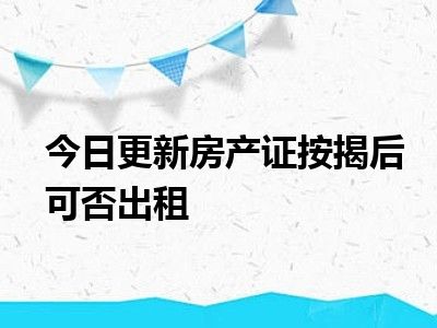 导读 目前大家应该是对房产证按揭后可否出租比较感兴趣的,所以今天好房网小编CC就来为大家整理了一些关于房产证按揭后可否出租方面的相关知识来