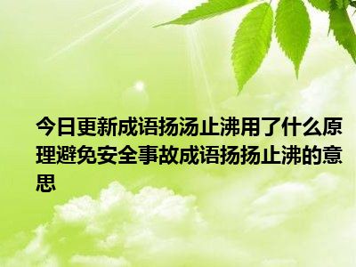 目前上述的内容应该能够为大家解答出大家对于成语“扬汤止沸”用了什么原理避免安全事故成语“扬扬止沸”的意思的疑惑了,所以如果大家还想要了解更多的知识内容,也可以关注本站其他文章进行了解哦。
