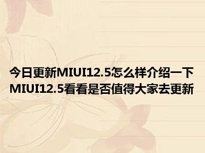 目前上述的内容应该能够为大家解答出大家对于MIUI12.5怎么样,介绍一下MIUI12.5看看是否值得大家去更新的疑惑了,所以如果大家还想要了解更多的知识内容,也可以关注本站其他文章进行了解哦。