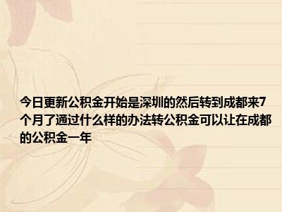 导读 目前大家应该是对公积金开始是深圳的,然后转到成都来7个月了,通过什么样的办法转公积金可以让在成都的公积金一年比较感兴趣的,所以今天
