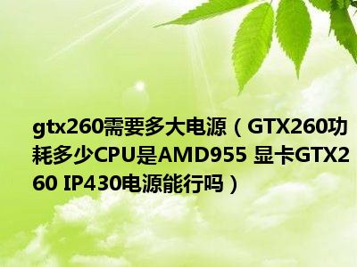 导读 相信目前很多小伙伴对于GTX260功耗多少?CPU是AMD955+显卡GTX260+IP430电源能行吗?都比较感兴趣,那么小编今天在网上也是收集了一些与GTX2